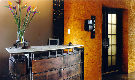 Re-establishing their home and office from the West Coast back amidst the gentile mansions of Richmond Virginia, on one of the world’s most beautiful avenues, they challenged their architect to transform the first floor of a classic Southern home into a reflection of the company’s brand. The real challenge was bringing the architect’s vision off the page and literally onto floors and walls. Stained concrete, aniline-dyed chip board, stainless steel, raw steel plate, pipe and flame/acid force rusted sheets? That was left coast modern and not too familiar to most fabricators then but the design remains current many years later, a testament to the genius of the architect. The office was recently nominated locally in a contest for “best office space” and not so surprisingly is the architect’s current office (3North).